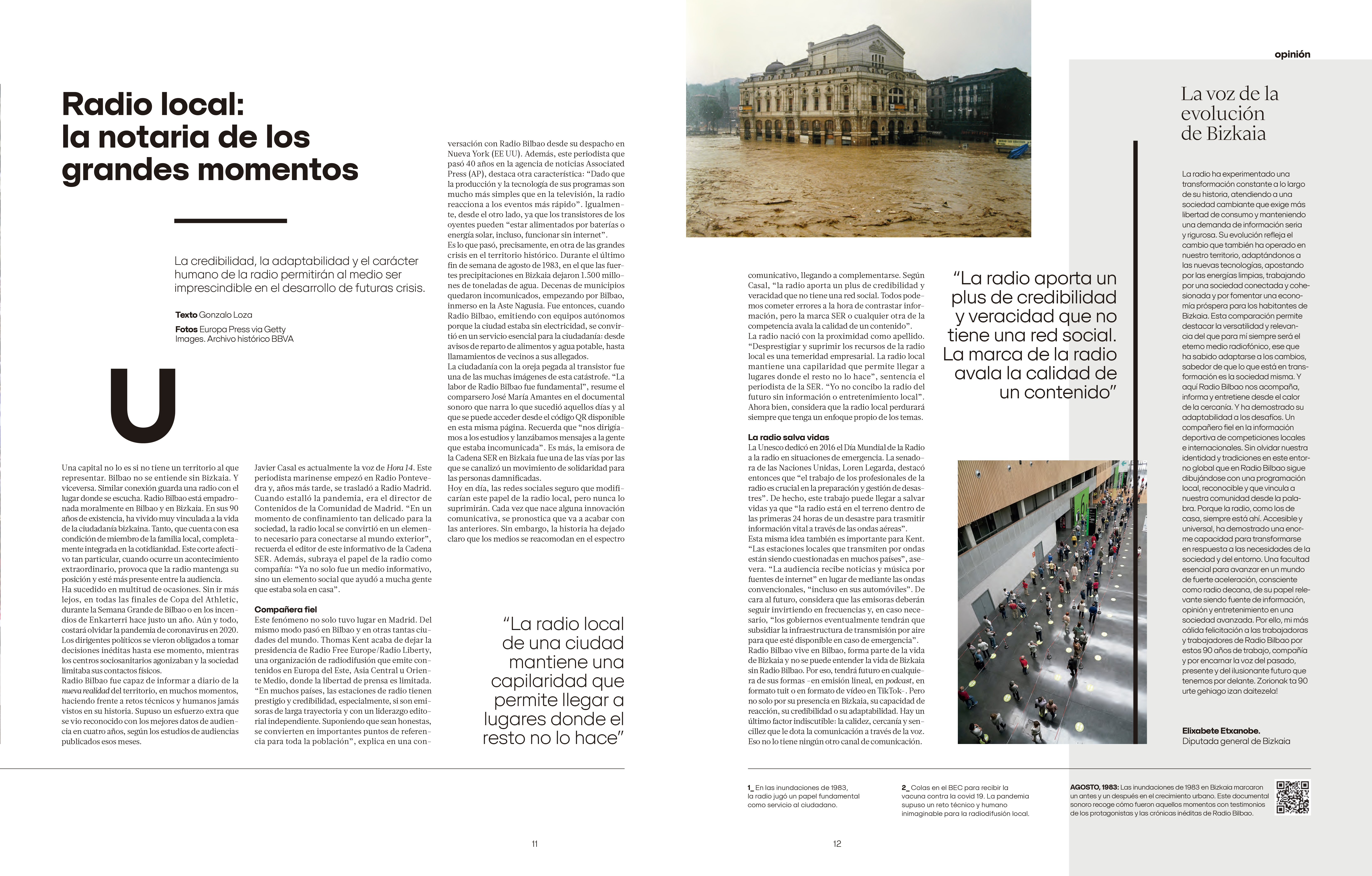 Texto publicado el 28 de noviembre de 2023 en la revista conmemorativa del 90º aniversario de Radio Bilbao distribuida con la edición del diario ‘El País’. Escrito por Gonzalo Loza.