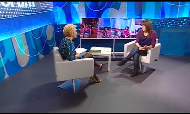 …Sí, habéis adivinado. En frente se encuentra el set del programa de entrevistas Fórum. Colocan las dos sillas que vemos en la imagen central una enfrente de otra; desplazan un plasma del plató del Teleberri hasta allí, y cambian la parrilla de iluminación. Por supuesto que usan las mismas cámaras, lo que significa que cuando se emite Teleberri no se puede grabar simultáneamente Fórum. En la imagen de la derecha vemos mejor el improvisado plató de Forum.