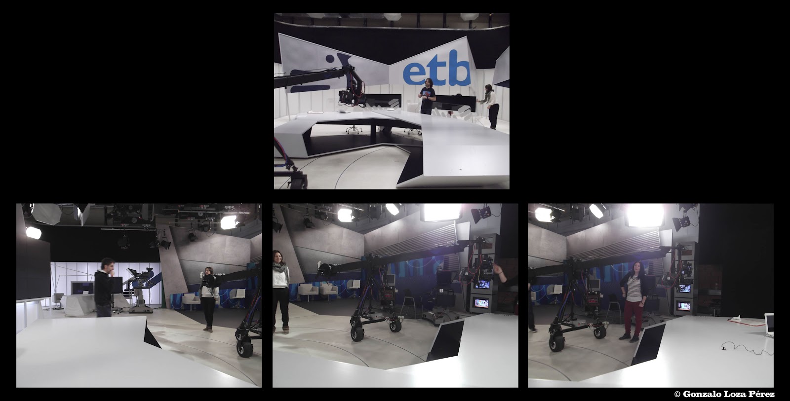 Ya vemos que en este caso cuentan con 6 cámaras (cuatro en pedestal y dos grúas) que comparten los dos programaas. Por eso, Informativos Telecico se emite a las 15h. y a las 21h., mientras que Noticias Cuatro a las 14h. y a las 20h. porque, como he mencionado antes, no pueden estar emitiendo desde los dos sets a la vez. De hecho, desde que termina Noticias Cuatro, sobre las 14:50 y las 20:50, tienen 10 minutos justos para girar 180º las cámaras y mover las plataformas en las que están las mesas de los platós.